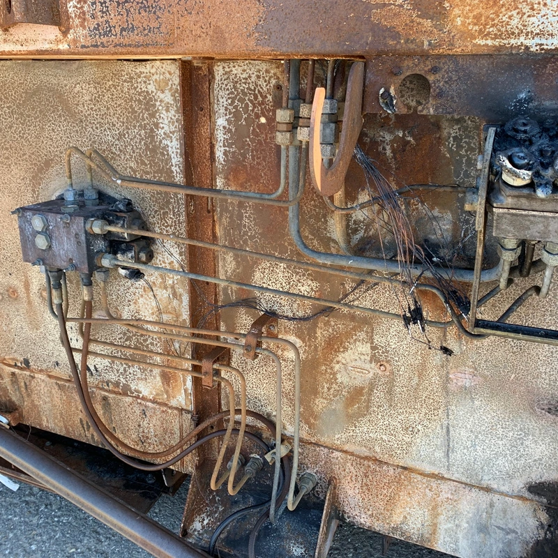***** Barre de coupe partiellement calcinée suite à l'incendie de la moissonneuse *****