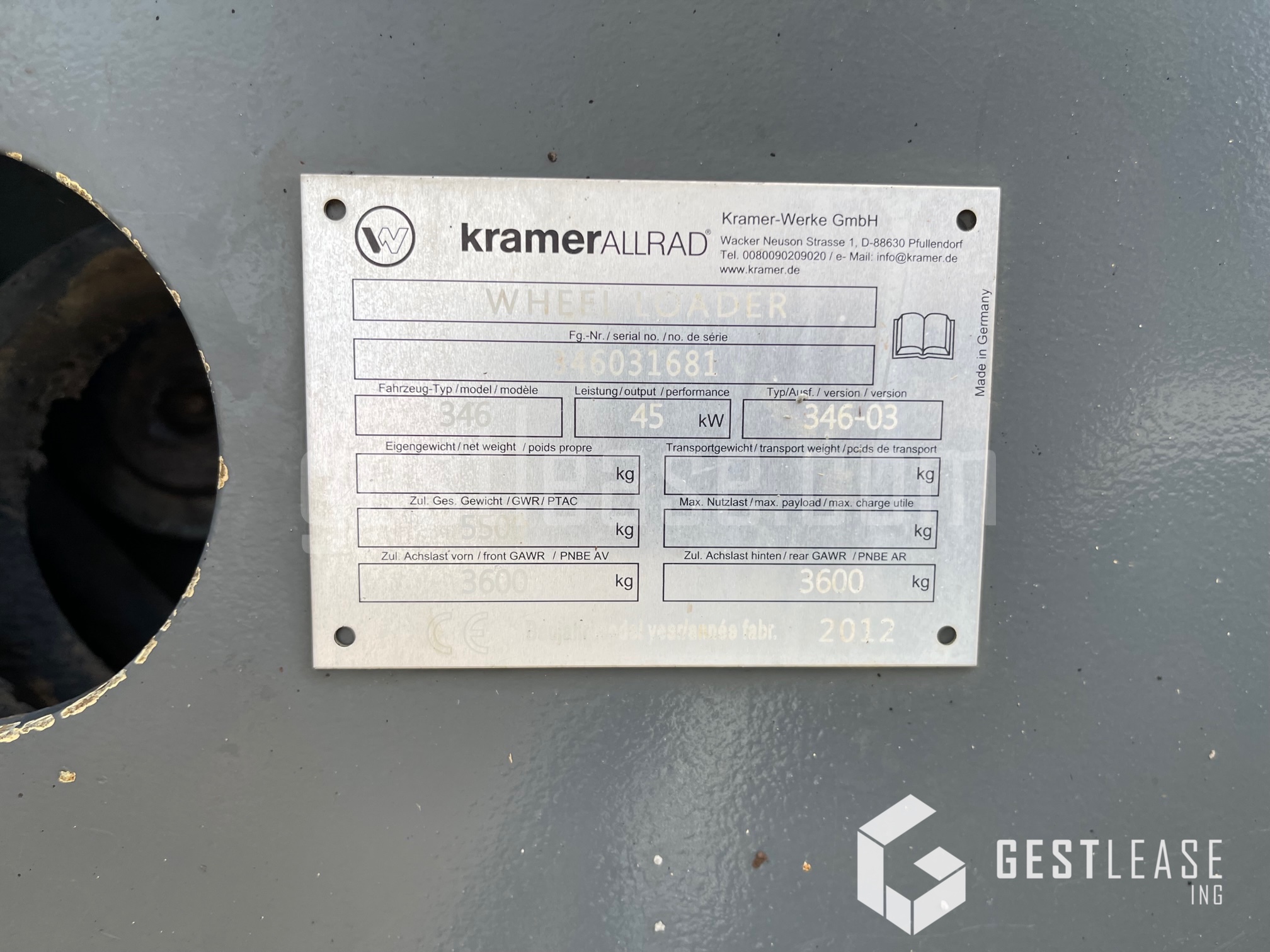Chargeuse KRAMER 750 (346-03) de 2012 avec 1 598 heures au compteur.