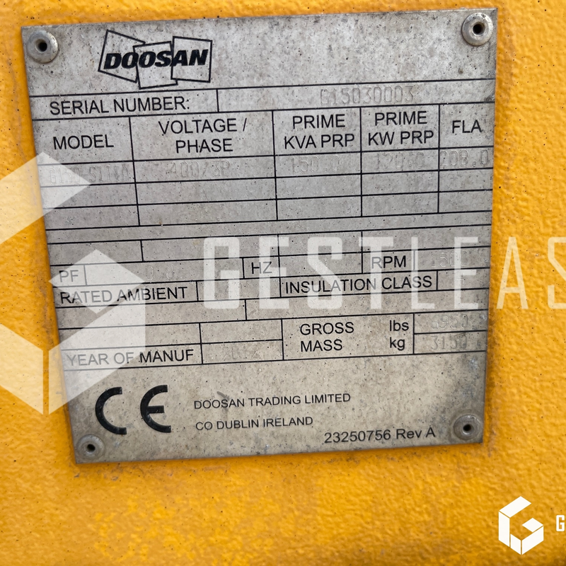 Groupe électrogène DOOSAN G150 de 2012 avec 10 364 heures au compteur