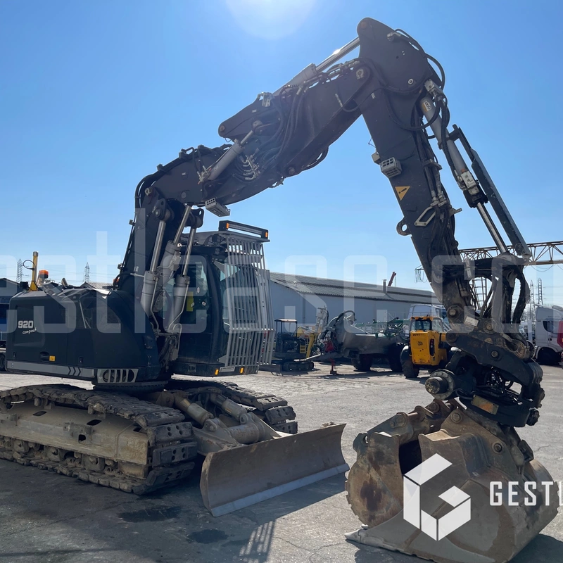 La pelle sera équipée pour la vente d'un godet de curage inclinable, d'un godet de terrassement, d'un tranché et d'un tiltrotateur liebherr SW48 double attache hydraulique.